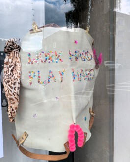 Amelie Behler und Leni Benning, Work Hard Play Hard. Arschleder (Leder), Glitzersteine, Pailletten, Seide, Federn, Pompons. Foto: Magdalena Götz
