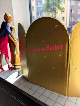 Leonie Schröter, Sophia Koch und Julia Gehlen, BergbauBarbies – Protecting Dolls. Mixed Media Installation mit Barbie-Puppen. Foto: Magdalena Götz.