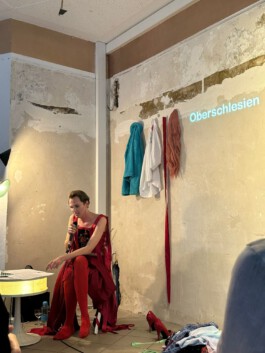 Lecture-Performance von Tubi Malcharzik: «Nŏs nie dogonium – Über Desidentifikation, Nicht-Binarität und leise Zwischenrufe», 12.07.2025. Foto: Laura Kucklinski.